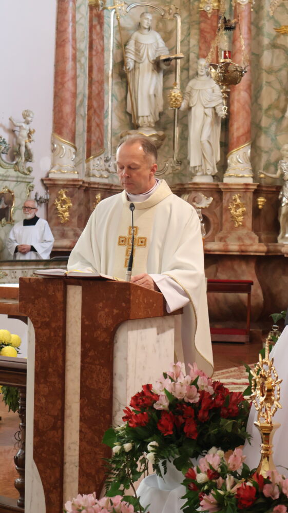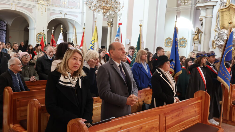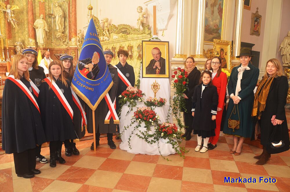 4 listopada miała miejsce główna uroczystość, która rozpoczęła się Mszą św. dziękczynną sprawowaną przez księdza Prałata Artura Niemirę. W wygłoszonej homilii ksiądz Prałat przypomniał ideały wychowawcze reprezentowane przez Kardynała Wyszyńskiego. Odwołał się do słów Błogosławionego: „Tylko religijne wychowanie w szkole da naszej młodzieży te cnoty, bez których nie można skutecznie umacniać sprawiedliwości społecznej” oraz „szkoła musi dać dzieciom i młodzieży miłość do Ojczyzny, do kultury domowej, rodzinnej i narodowej”. Podkreślił jak ważna dla niego była miłość do Ojczyzny wyrażająca się m.in. znajomością historii, szacunkiem dla tradycji, zwyczajów, języka ojczystego. Swoją homilię zakończył wezwaniem do nauczycieli, którzy muszą wykazywać się nie tylko kwalifikacjami zawodowymi, ale przede wszystkim moralnymi. Ich praca to fundament pod przyszłość człowieka, naszego narodu, Ojczyzny.