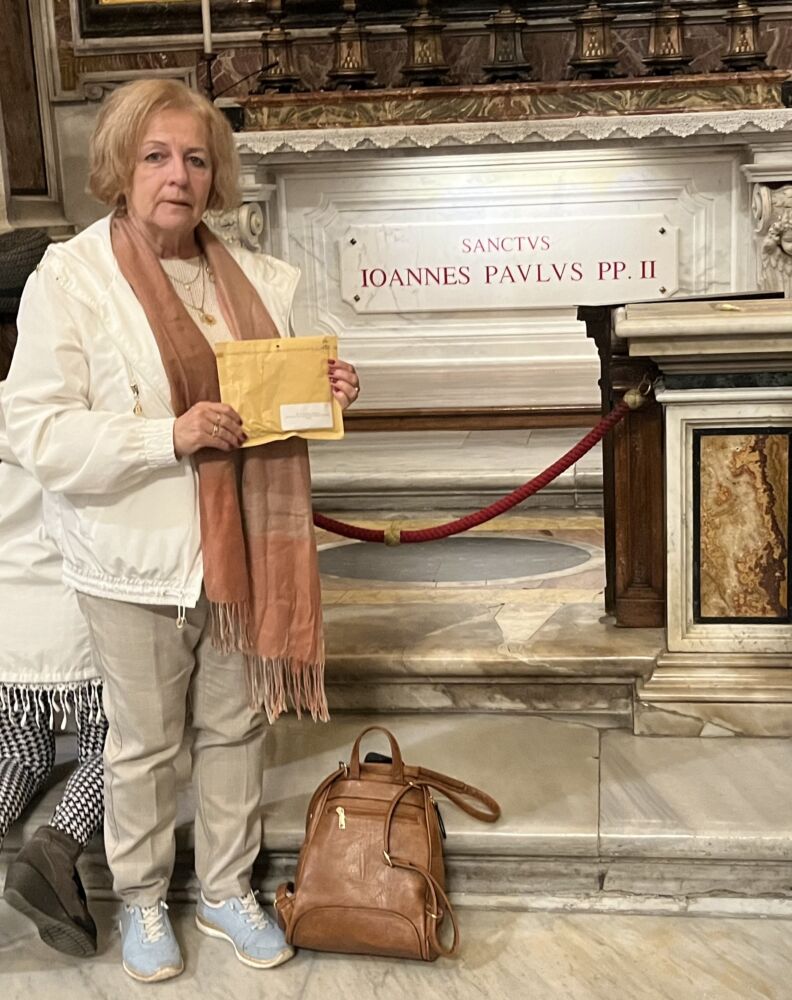 21 października 2024 r. Stowarzyszenie Przyjaciół Szkół Katolickich w osobie pani prezes Marii Chodkiewicz i członka Stowarzyszenia Katarzyny Chęsy Zajic udało się na pielgrzymkę do Rzymu i Asyżu by odebrać z kurii relikwie bł. Carlo Acutisa. Pani Prezes złożyła intencje Stowarzyszenia u grobu św.Jana Pawła II w dniu Jego święta 22.10. Następnie 23.10 udała się do Asyżu do kurii biskupiej przy kościele ogołocenia św. Franciszka, gdzie znajdują się doczesne szczątki młodego błogosławionego. Dzięki życzliwości ks. Dariusza Kowalskiego, który już od wielu lat posługuje w miejscowym kościele Panie mogły zobaczyć kilka pięknych miejsc w Asyżu. Następnego dnia w czwartek o godz 7.00 uczestniczyliśmy w Mszy św. W j. Polskim koncelebrowanej przez 50 kapłanów dwóch kardynałów i kilku polskich biskupów pod przewodnictwem bp Radosława Zmitrowicza biskupa pomocniczego diecezji kamieńsko- podolskiej. Ks biskup dziękował za pomoc Ukrainie i prosił o modlitwę za Rosję jak wzywała Matka Boża w Fatimie, byśmy mogli żyć w pokoju. Niech Dobry Bóg udzieli naszej młodzieży wielu łask za przyczyną bł. Carla!