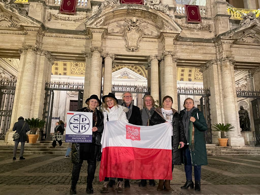 Ostatniego dnia roku 2022 otrzymaliśmy bardzo smutną wiadomość – odszedł do Domu Ojca nasz umiłowany Papież Emeryt Benedykt XVI. Pani Prezes Maria Chodkiewicz szybko podjęła próbę zebrania Zarządu Stowarzyszenia na pielgrzymkę do Rzymu, by SPSK mogło towarzyszyć Papieżowi w ostatniej drodze. Udało się zebrać skład i tak w dniach 4-7.01. 2023 r. otrzymaliśmy niezwykłą łaskę pielgrzymowania do Rzymu. Byliśmy obecni na pogrzebie Benedykta XVI i modliliśmy się przy grobie św. Jana Pawła II – patrona wielu naszych szkół. Wędrowaliśmy po ogromnych Muzeach Watykańskich słuchając historii Rzymu i Kościoła. Widzieliśmy wiele pięknych miejsc w Rzymie – to wielka łaska i błogosławieństwo – dziękujemy za to Bogu. Zapraszamy do fotorelacji.