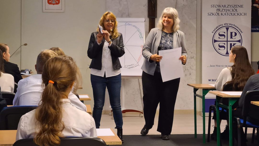 Prowadzące dr Jolanta Kraśniewska i Małgorzata Wróbel zwróciły uwagę na konieczność podjęcia własnego rozwoju i wzięcia odpowiedzialności za to jak on przebiega. Pani Prezes Maria Chodkiewicz z wielką radością zachęciła uczniów do pracy nad własnym rozwojem osobowym podkreślając, że takie jest zadanie Stowarzyszenia: praca nad integralnym rozwojem nauczyciela i ucznia. Spotkanie to było przygotowaniem do rozdania indeksów rozwoju osobowego, które na wzór pracy ze studentami mają być narzędziem i wyzwaniem do wypłynięcia na głębię i mają służyć pomocą uczniom naszych szkół.