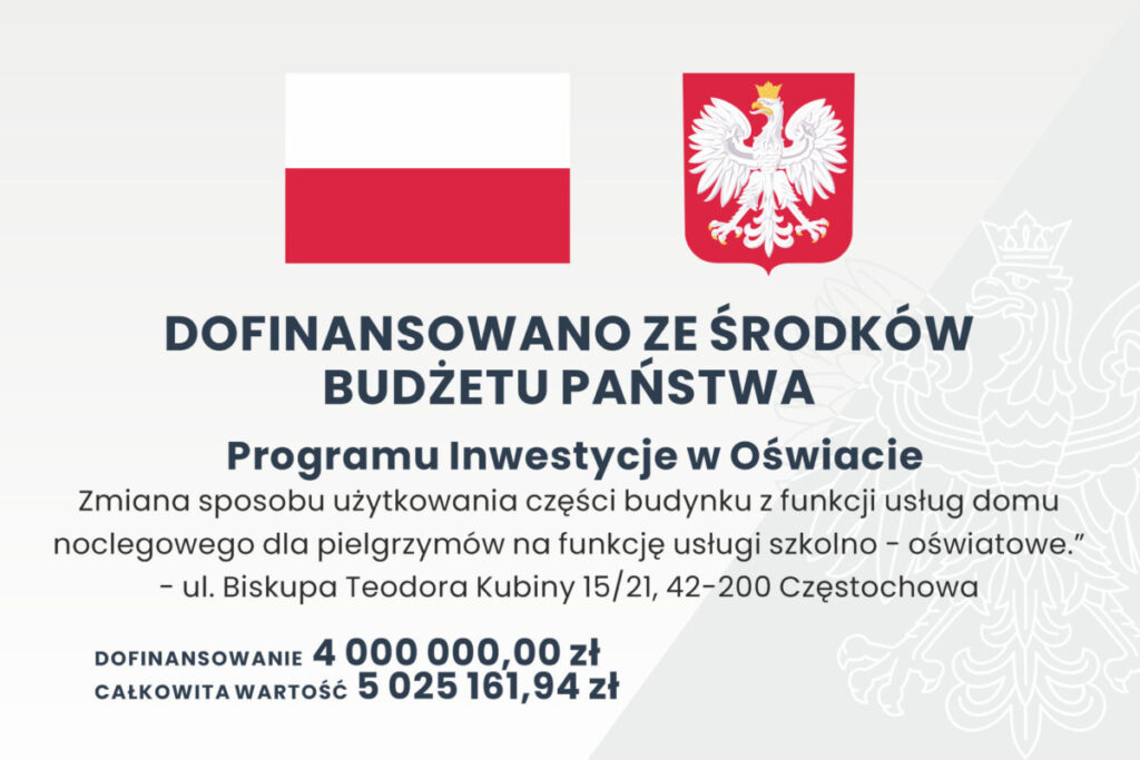 Zakupiony przez Stowarzyszenie Przyjaciół Szkół Katolickich budynek przy ul. bp. Teodora Kubiny w Częstochowie przeznaczono na siedzibę i działalność publicznego Katolickiego Liceum Ogólnokształcącego Stowarzyszenia Przyjaciół Szkół Katolickich im. Matki Bożej Jasnogórskiej w Częstochowie. W budynku mają być realizowane dwie główne funkcje: dydaktyczno – wychowawczo – opiekuńcza w części szkolnej i opiekuńczo – wychowawcza w internacie. W budynku naukę pobierać ma około 200 uczniów, w tym osoby niepełnosprawne. Z internatu korzystać może do około 40 uczniów. Pozyskanie przez szkołę internatu, będzie odpowiedzią na potrzeby uczniów dojeżdżających do szkoły z odleglejszych miejscowości, głównie ze środowisk wiejskich, oraz młodzieży korzystającej z prywatnych stancji.