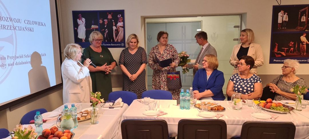 Część merytoryczna konferencji Dyrektorów Szkół i Przedszkoli SPSK rozpoczęła Pani Prezes Maria Chodkiewicz od przedstawienia tematu programu wychowawczo – formacyjnego Persona na rok szkolny 2022/23, którego tytuł został zaczerpnięty z kazania ks. Bp Andrzeja Przybylskiego wygłoszonego w czasie naszej czerwcowej pielgrzymki na Jasną Górę: „Za jakim duchem idziesz?”. Pani Prezes przypomniała wagę szkolnej modlitwy, przypomniała główne projekty kontynuowane w Stowarzyszeniu i poinformowała o projektach planowanych przez Stowarzyszenie w ramach MEiN. Kolejna część dotyczyła organizacji pracy szkół, roli dyrektora i możliwości pracy w ramach programu Laboratorium Przyszłości. Bardzo pracowity dzień… Słowem witamy w roku szkolnym 2022/23!