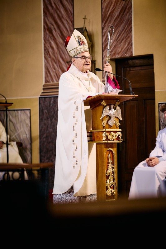 Ceremonia miała miejsce w Kościele NMP Królowej Anielskiej w Kalei i rozpoczęła się uroczystą Mszą Świętą, którą odprawił Jego Ekscelencja biskup Antoni Długosz. Prezes Stowarzyszenia Przyjaciół Szkół Katolickich Pani Maria Chodkiewicz odczytała uchwałę nadania imienia szkole, która od teraz nosi imię Błogosławionego Kardynała Stefana Wyszyńskiego. Podczas Mszy Świętej dokonano poświęcenia nowego sztandaru ufundowanego przez Radę Rodziców i sponsorów, który następnie Pani Dyrektor Renata Szymonik przekazała uczniom naszej szkoły. Był to moment pełen wzruszeń i dumy, gdyż postać kardynała Wyszyńskiego jest dla nas wszystkich wielkim wzorem do naśladowania. W trakcie tej uroczystości przedstawiciele uczniów złożyli ślubowanie, wyrażając tym samym swoje zobowiązanie do pielęgnowania wartości, które będą ich prowadzić przez kolejne lata nauki. Na koniec Mszy Świętej Pani Dyrektor zawierzyła wspólnotę szkolną Niepokalanemu Sercu Maryi, Królowej Polski.