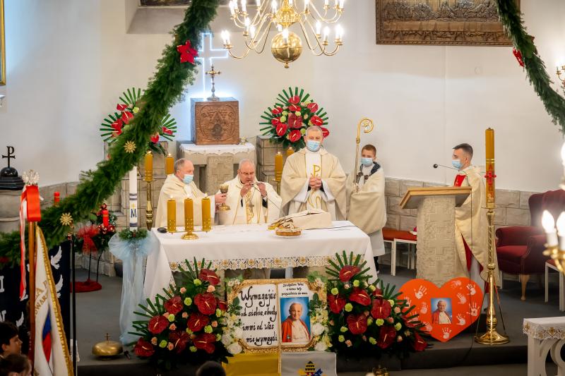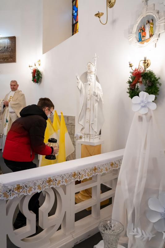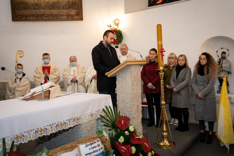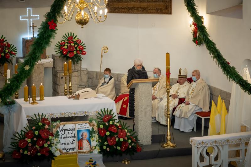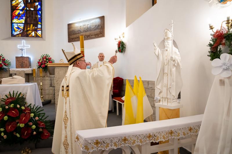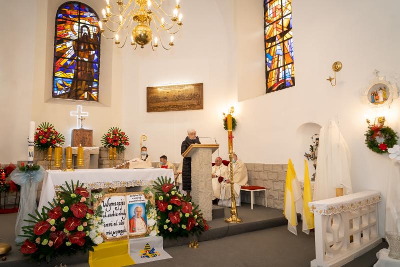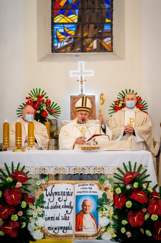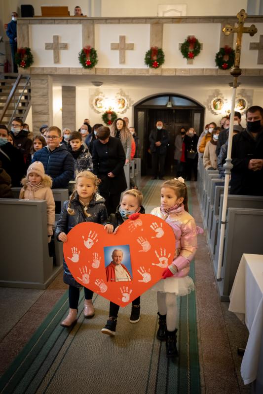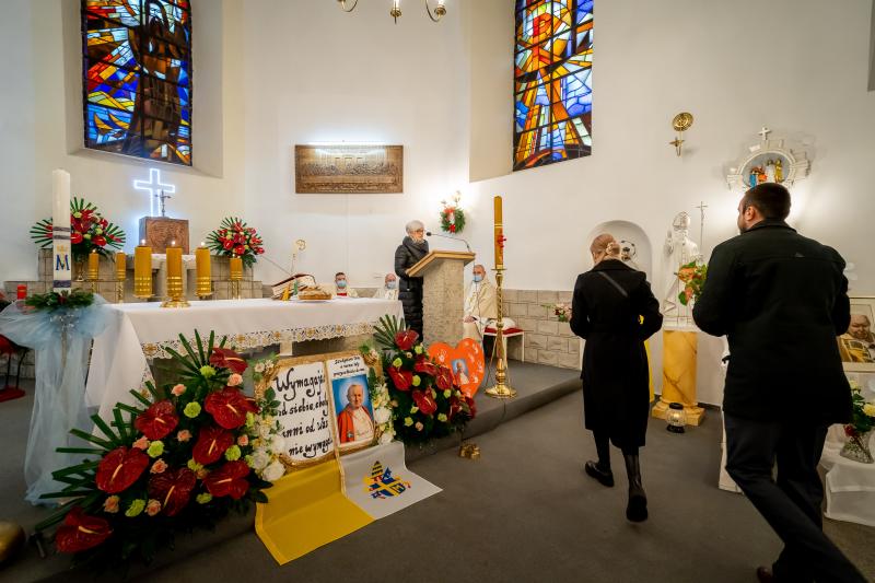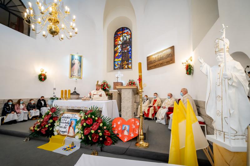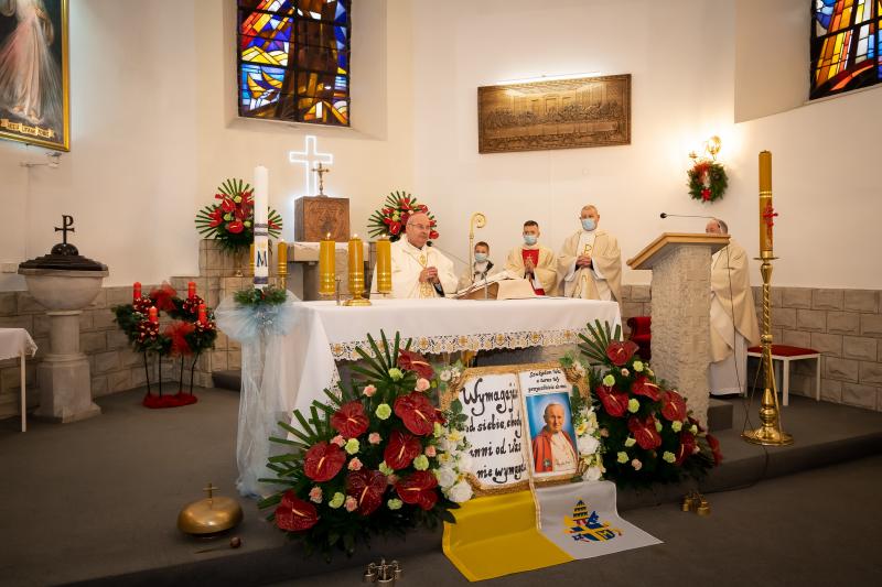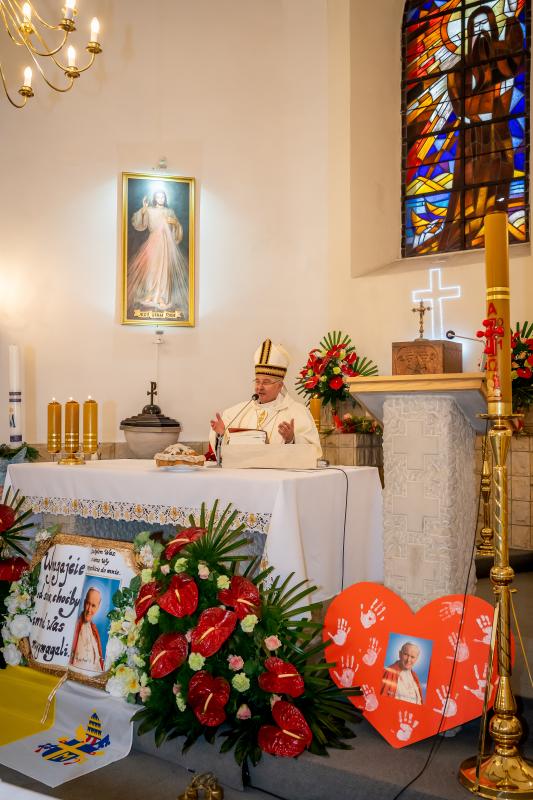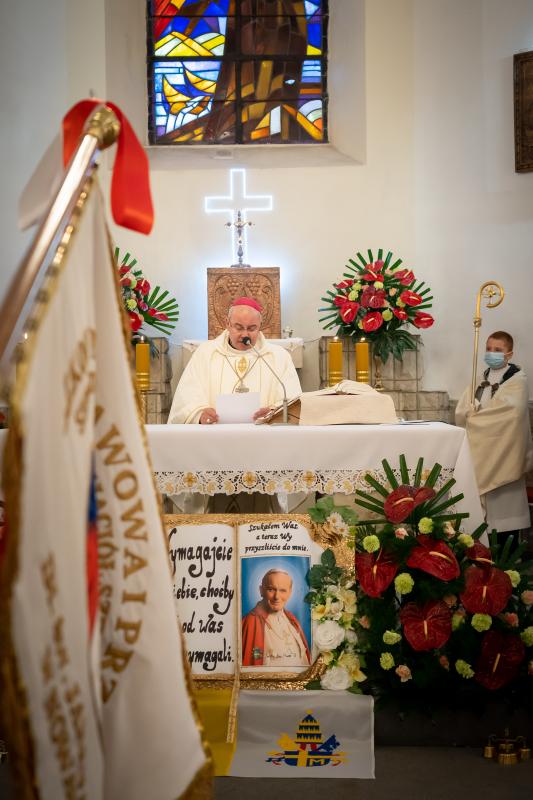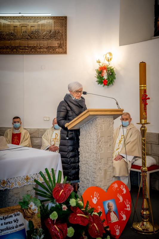 ks. Maciejem Skórą oraz ks. Proboszczem Ryszardem Krawieckim. Uroczysty akt nadania imienia wręczyła Pani Prezes SPSK, Maria Chodkiewicz. W uroczystości brali również udział zaproszeni goście, władze samorządowe, przyjaciele placówki, uczniowie, nauczyciele, pracownicy oraz rodzice. Motywem przewodnim całej uroczystości były słowa papieża: „Wymagajcie od siebie, choćby inni od Was nie wymagali”.