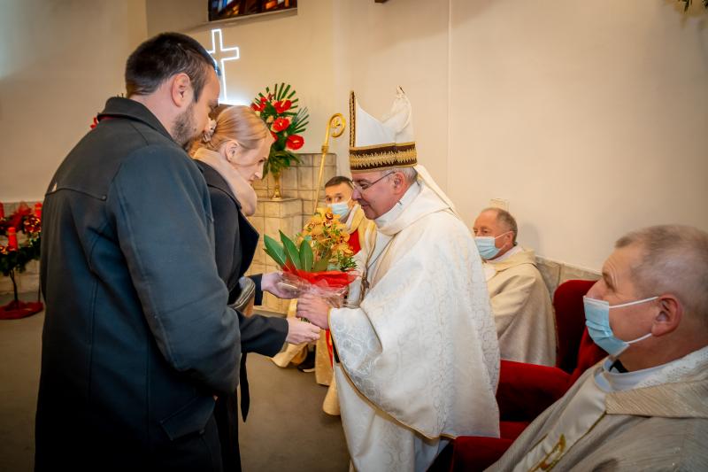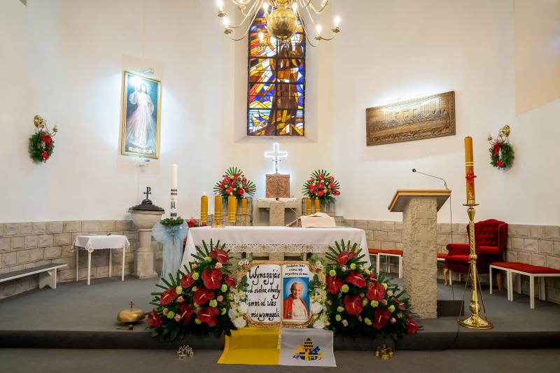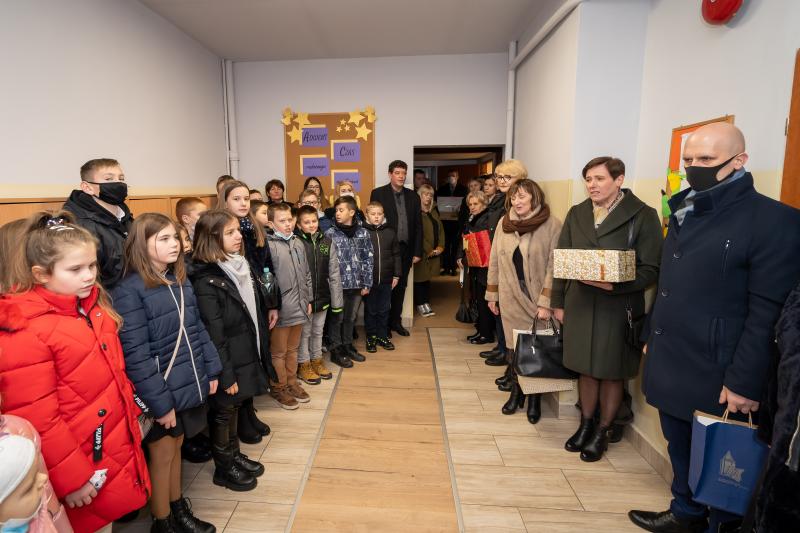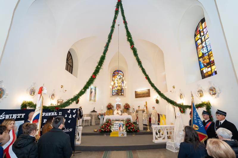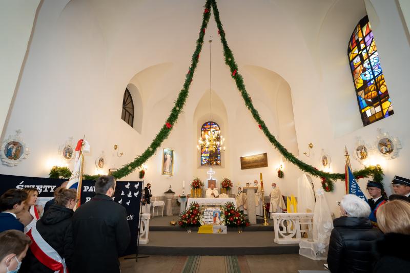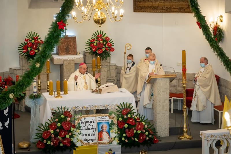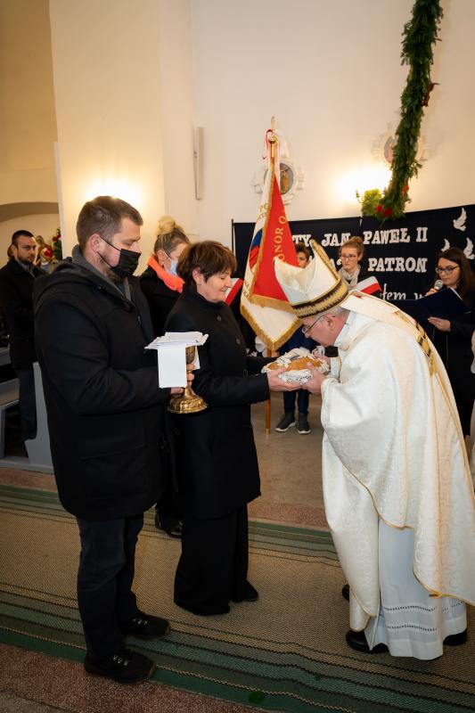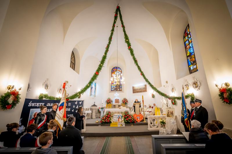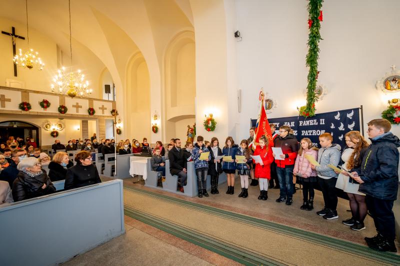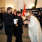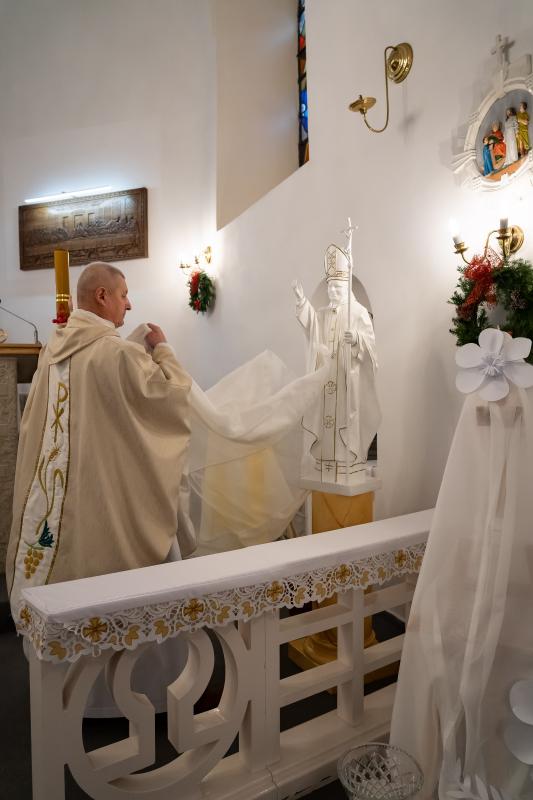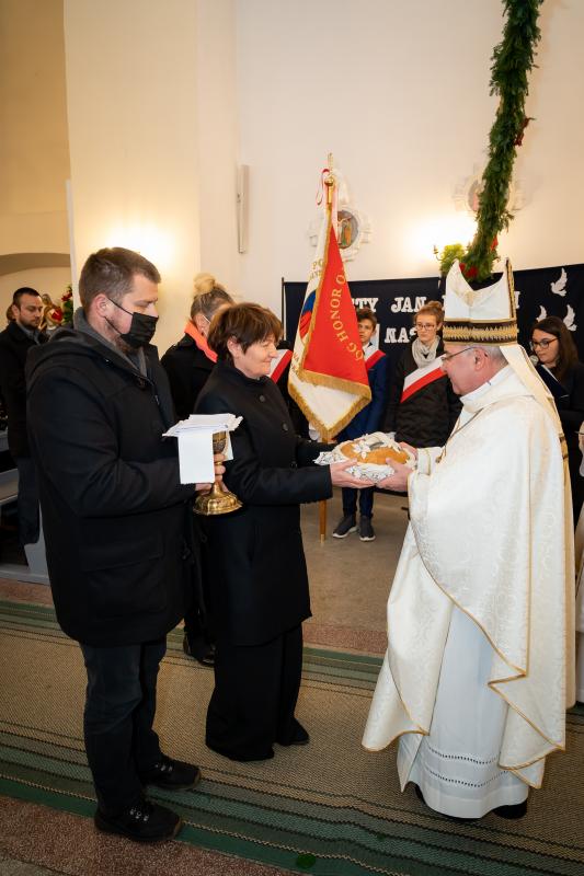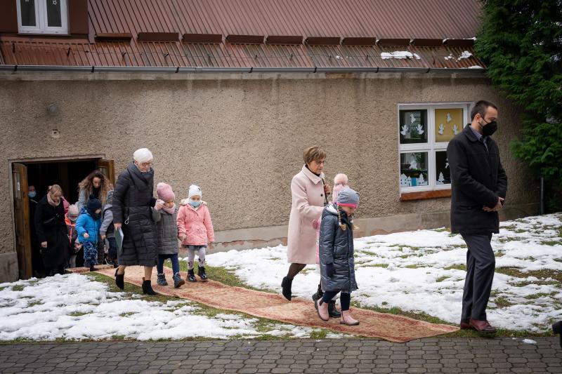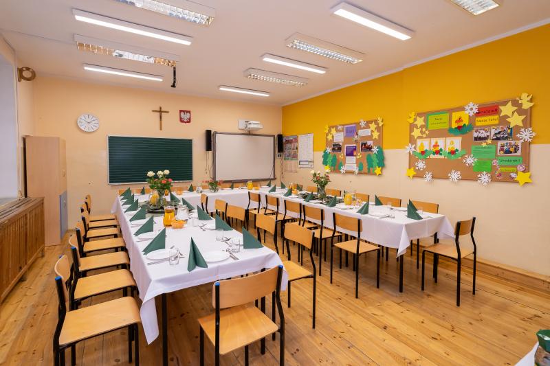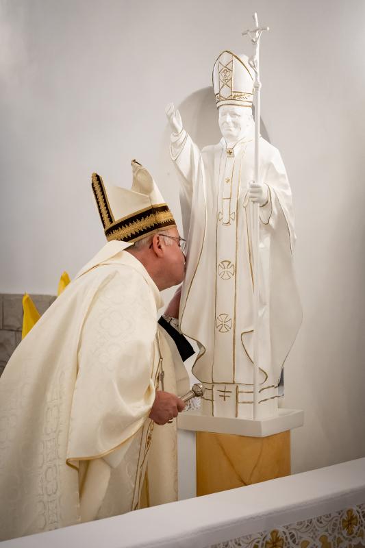 ks. Maciejem Skórą oraz ks. Proboszczem Ryszardem Krawieckim. Uroczysty akt nadania imienia wręczyła Pani Prezes SPSK, Maria Chodkiewicz. W uroczystości brali również udział zaproszeni goście, władze samorządowe, przyjaciele placówki, uczniowie, nauczyciele, pracownicy oraz rodzice. Motywem przewodnim całej uroczystości były słowa papieża: „Wymagajcie od siebie, choćby inni od Was nie wymagali”.