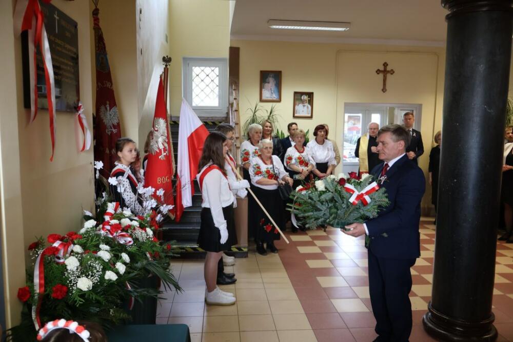 Pierwszym punktem uroczystości była Msza święta w kościele pw. św. Antoniego w Koziegłówkach, którą odprawiał ksiądz kanonik Kazimierz Adam Świerdza. Następnie w Szkole Podstawowej SPSK w Mysłowie miało miejsce odsłonięcie i poświęcenie okolicznościowej tablicy w hołdzie Polakom pomordowanym przez NKWD w Katyniu i pamięci 96 ofiar katastrofy smoleńskiej. Poświęcenia tablicy dokonał ks. proboszcz Kazimierz Świerdza. Uroczystość uświetnili swą obecnością między innymi: Prezes Stowarzyszenia Przyjaciół Szkół Katolickich w Częstochowie Maria Chodkiewicz i Wiceprezes Zbigniew Zastawny, asystent Poseł do Parlamentu Europejskiego Jadwigi Wiśniewskiej Marcin Woś, Burmistrz Gminy i Miasta Koziegłowy Jacek Ślęczka, Dyrektor Szkoły Podstawowej SPSK w Winownie Anna Madejska-Boleń, radny GiM Koziegłowy Dariusz Stuła, sołtys Mysłowa Marcin Kwoka, KGW Mysłowianki, mieszkańcy Mysłowa oraz rodzice. Obecne były także poczty sztandarowe: Szkoły Podstawowej SPSK w Winownie, OSP w Mysłowie oraz poczet górniczy.