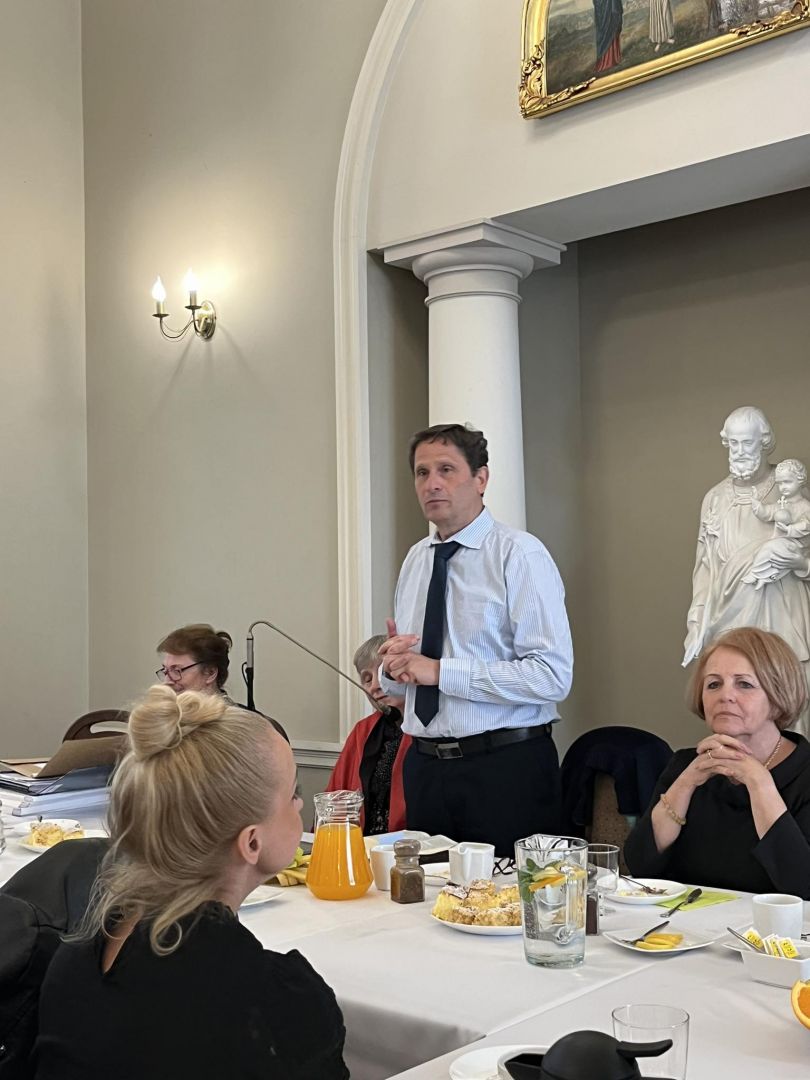 W dalszej części naszego pielgrzymowania spotkaliśmy się z Jean-Marie Élie Setbon, byłym rabinem, a obecnie nawróconym świadkiem wiary, który jest wykładowcą i pedagogiem specjalizującym się w teologii i egzegezie biblijnej. Swoją fascynującą podróż duchową opisał w książce „Od jarmułki do Krzyża”. Następnie dyrektorzy spotkali się na części roboczej.