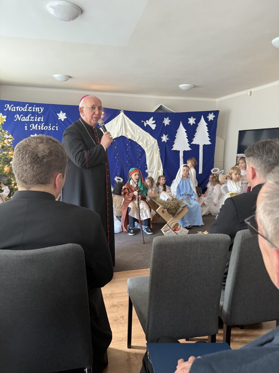 Przygotowane przez dzieci i młodzież przedstawienia bożonarodzeniowe przypominały o istocie Świąt – o przyjściu na świat maleńkiego Jezusa, który przynosi ludziom nadzieję, pokój i miłość. Był to czas świadectwa wiary, wspólnoty i wzajemnej życzliwości, tak charakterystycznych dla środowisk naszych szkół i przedszkoli.