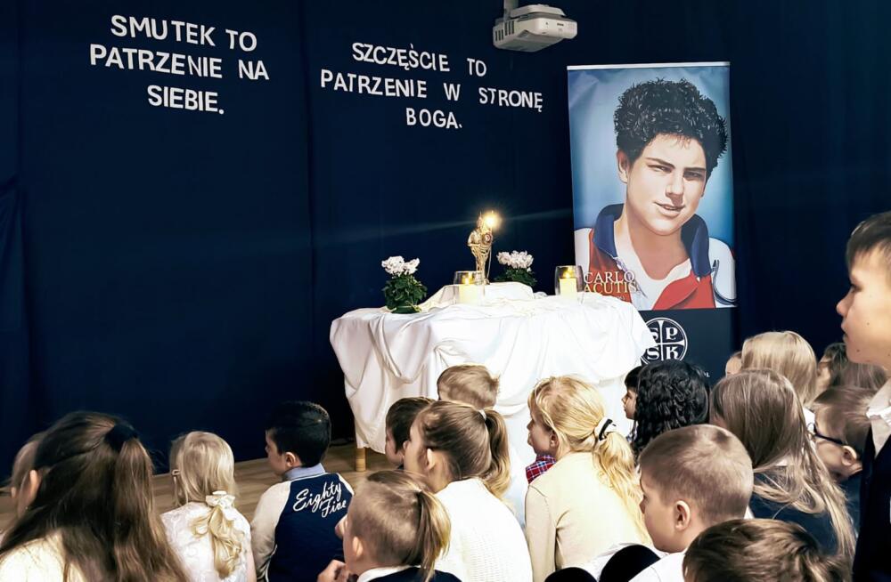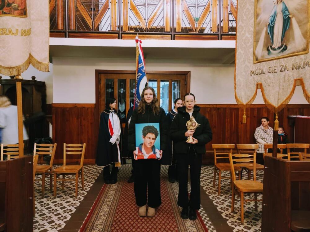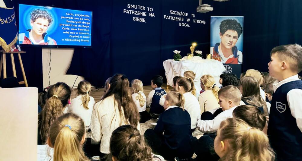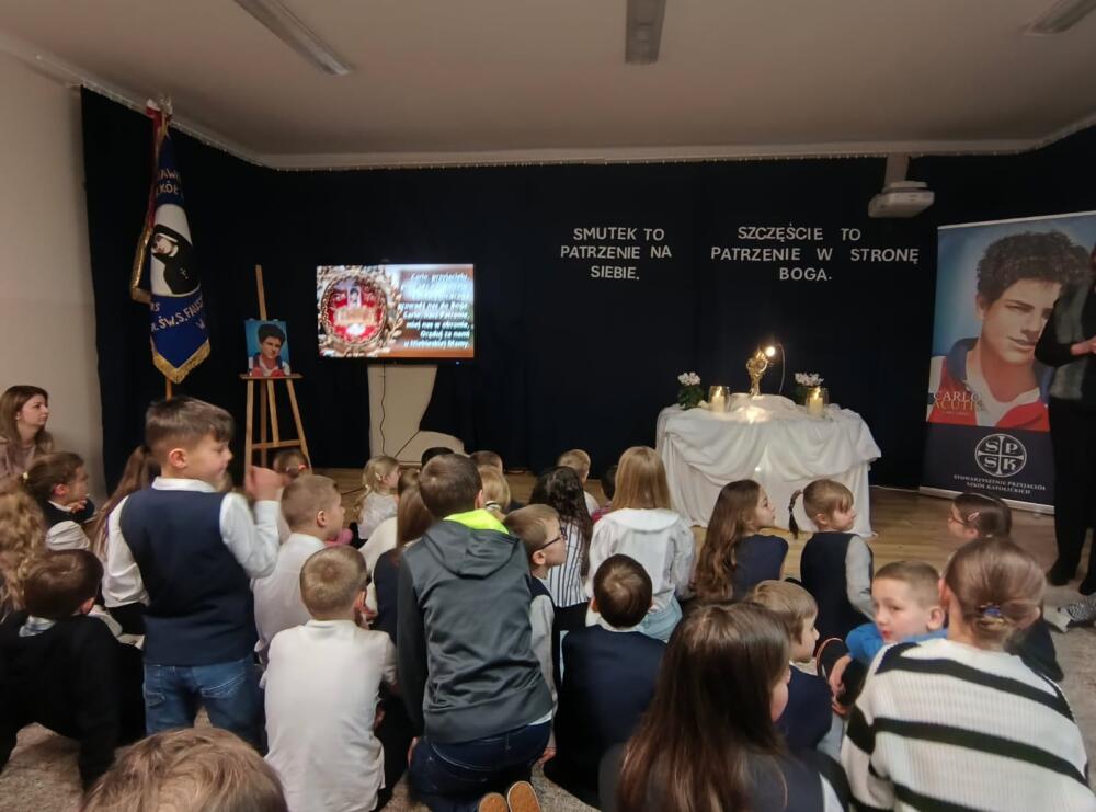 Po Mszy św. udaliśmy się do szkoły, gdzie trwaliśmy na modlitewnym spotkaniu z Gościem, który tak bardzo umiłował Jezusa i Jego Matkę – Maryję. Był to także czas na przypomnienie życiorysu Carla, który w maju zostanie ogłoszony świętym.