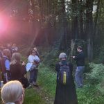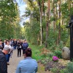 W tym dniu czekała nas jeszcze jedna niespodzianka – spotkanie ze świadkami p. Janem Szpytmą (bratem p. Mateusza Szpytmy, wiceprezesa IPN-u) i p. Romanem Kluzem (siostrzeńcem bł. Wiktorii Ulmy). Świadkowie poprowadzili nas na miejsce kaźni bł. Rodziny. Wiejski, owocowy sad tuż za parterowym domem, tabliczka upamiętniająca tragedię, parę wypalonych zniczy, kępki kwiatów. Niemi świadkowie historii. Ze wzruszeniem zmówiliśmy modlitwę i wysłuchaliśmy kilku informacji.