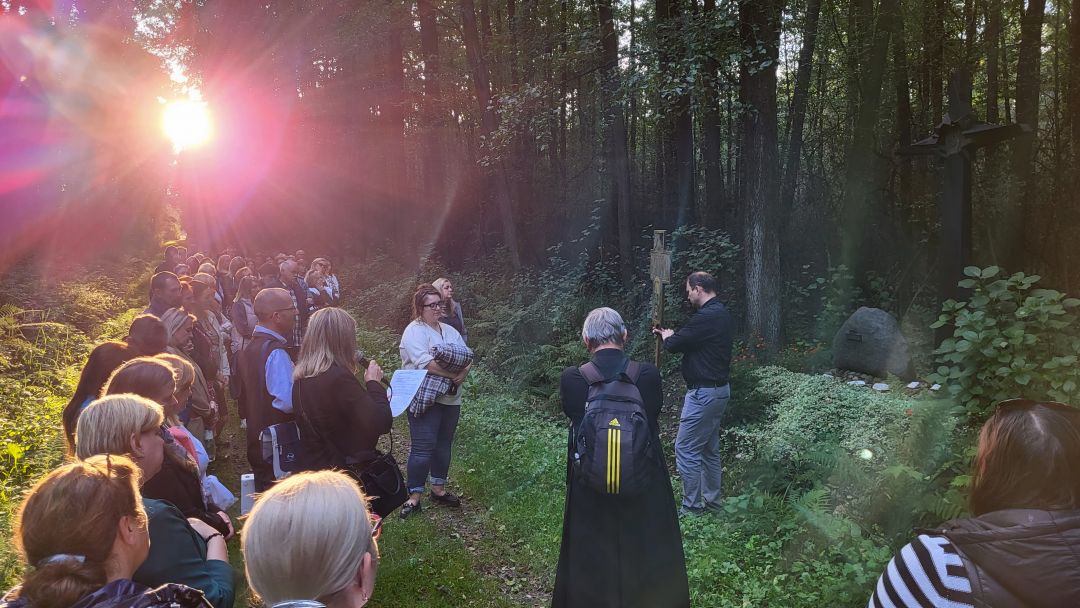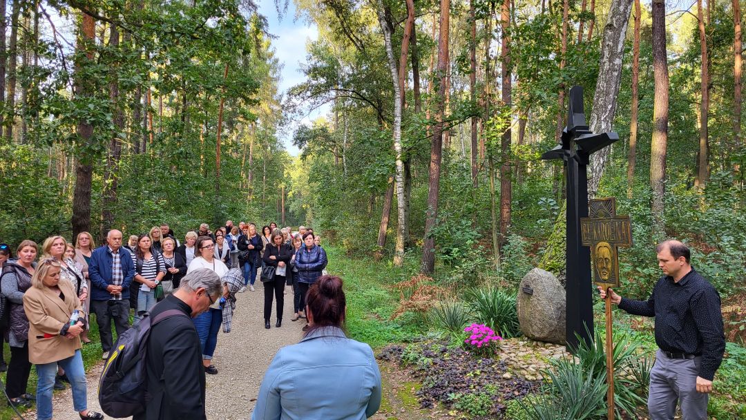 Nasze pielgrzymowanie rozpoczęliśmy od Zabawy – podtarnowskiej wioski, w której mieści się Sanktuarium bł. Karoliny Kózkówny. W przepięknej świątyni uczestniczyliśmy w Eucharystii i wysłuchaliśmy niezwykle ekspresyjnej opowieści o życiu i męczeństwie heroicznej nastolatki. Ze wzruszeniem dotykaliśmy sarkofagu ze szczątkami błogosławionej, który umiejscowiony jest pod mensą ołtarzową. Spotkanie z Karolinką zakończyliśmy drogą krzyżową w Wał-Rudzie. To tam – za jej domem rodzinnym – rozpoczyna się ostatnia droga nastoletniej męczennicy. Wiedzie terenami bagiennymi wśród liściastego lasu znaczona żelaznymi krzyżami – stacjami.