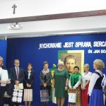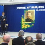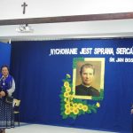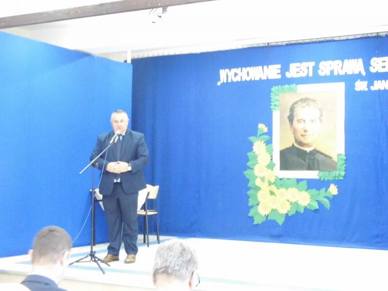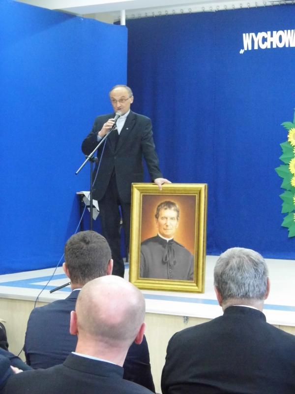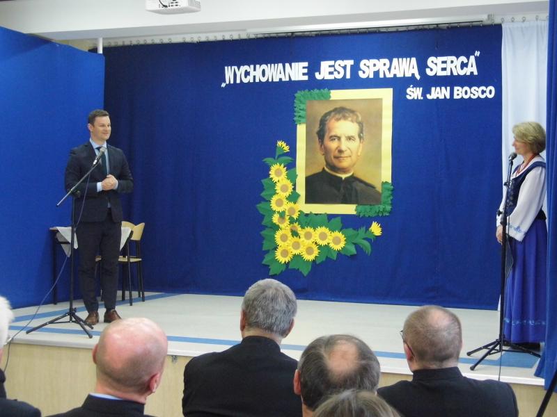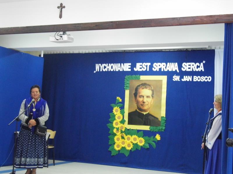 Po okolicznościowym przemówieniu p. Dyrektor zaprosiła do obejrzenia części artystycznej pt. ,,Św. Jan Bosko – Apostoł młodzieży”, który przygotowali uczniowie naszej szkoły. Zaśpiewali oni także dwie pieśni: ,,Wspieraj nas Janie Bosco” oraz ,,Europo, nie możesz żyć bez Boga”. Sylwetkę świętego Jana Bosko przybliżyła również prezentacja dotycząca jego życia i działalności. Po części artystycznej p. Dyrektor zaprosiła szanownych gości do zabrania głosu, a następnie podziękowała za uświetnienie naszej uroczystości.