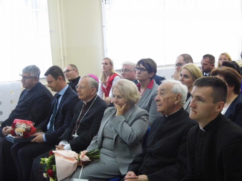 Po odśpiewaniu hymnu państwowego pani dyrektor Teresa Dziwisz powitała zgromadzonych gości: Jego Ekscelencję Marka Jędraszewskiego , wszystkich księży sprawujących Eucharystię, panią Prezes SPSK Marię Chodkiewicz i Zarząd SPSK, p. Marcina Ratułowskiego – Wójta Gminy Czarny Dunajec, p. Tadeusza Czepiela – Przewodniczącego Rady Gminy Czarny Dunajec oraz Radnych Gminy Czarny Dujnajec, p. Bożenę Bryl – Dyrektora Delegatury Kuratorium Oświaty w Krakowi Oddział w Nowym Targu, p. Iwonę Wontorczyk – Dyrektora GZO w Czarnym Dunajcu, p. Małgorzatę Kulawiak – Dyrektora CPKiS w Czarny Dunajec, p. S. Harbuta – sołtysa Czarnego Dunajca, p. J. Styrczulę i p. K. Krzysiaka – przedstawicieli OSP w Czarnym Dunajcu, p. M. Mierzyńską i Z. Słodyczkę – reprezentujące SONiRiP w Czerwiennem oraz wszystkich Dyrektorów Szkół z Gminy Czarny Dunajec oraz Dyrektorów Szkół SPSK z regionu Polski Południowej.