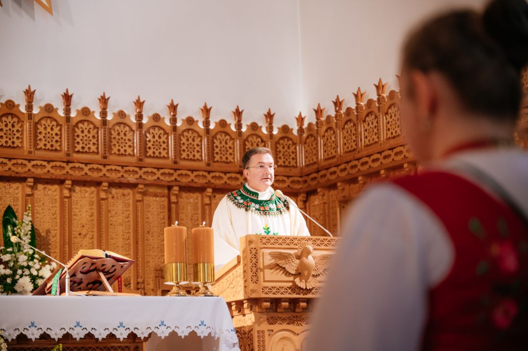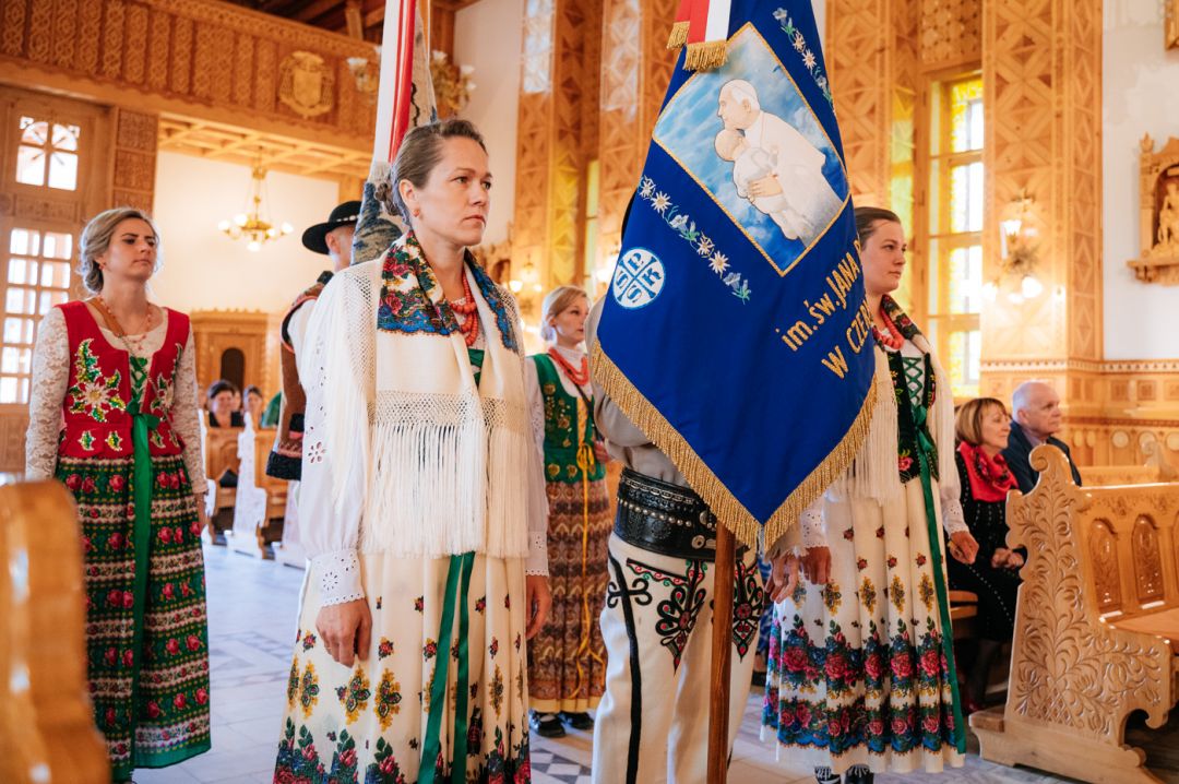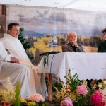 Po uroczystym (i zarazem pysznym 🙂 ) obiedzie odbył się spektakl teatralny pt. „Spotkanie na Bachledówce” autorstwa Pani Zofii Truty, oraz reżyserstwa Pani Anny Słodyczki. Aktorzy w przepiękny sposób przybliżyli czasy pobytu Prymasa Wyszyńskiego na Bachledówce, gdy to podczas swoich wakacyjnych pobytów spotykał się z mieszkańcami Czerwiennego, pielgrzymami oraz zebranymi wokół niego dziećmi. Aktorzy naprzemiennie wzruszali a zarazem rozśmieszali całą publiczność, dzięki czemu zdobyli owacje na stojąco. W przestawieniu wziął udział również zespół góralski „Bachledówka” wraz z zespołem muzycznym.