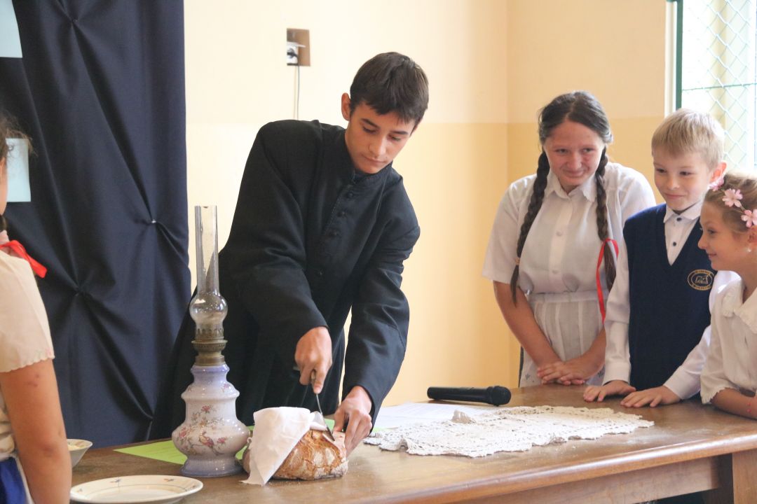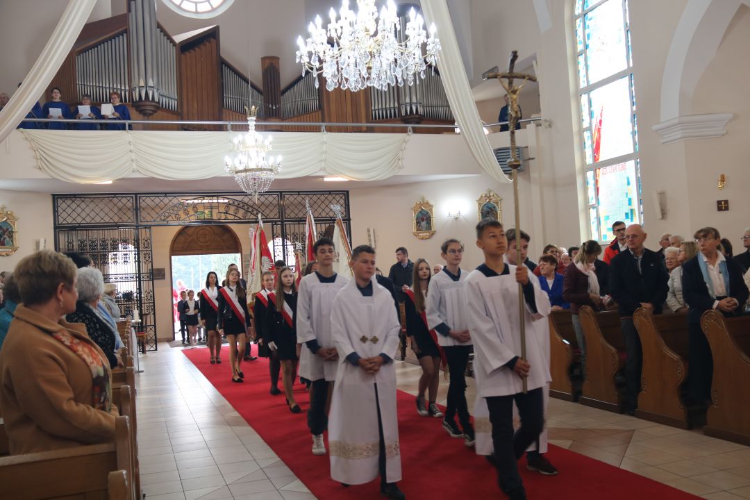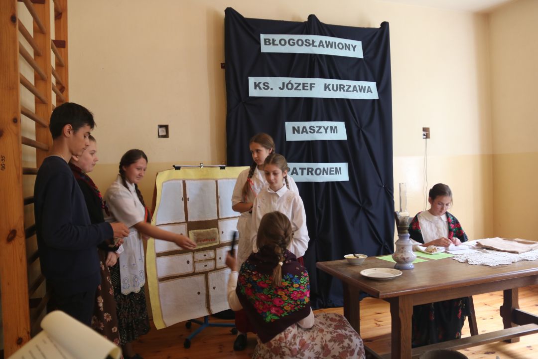 Druga część uroczystości odbyła się w budynku szkoły gdzie uczniowie zaprezentowali program artystyczny, przedstawiający życiorys swojego patrona.