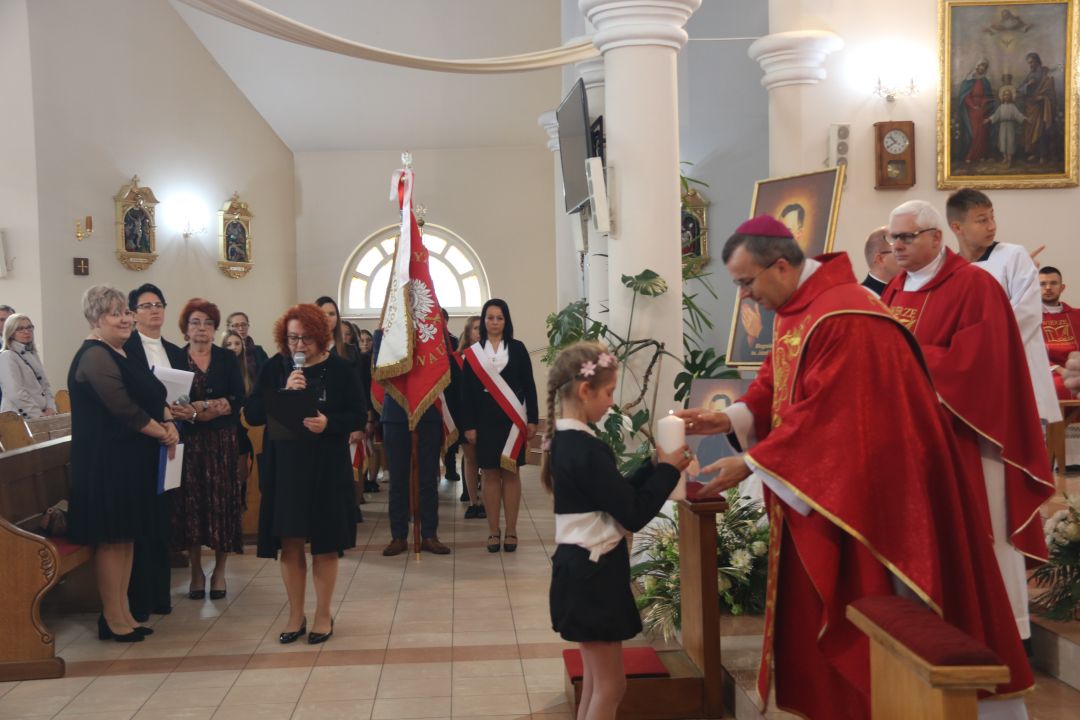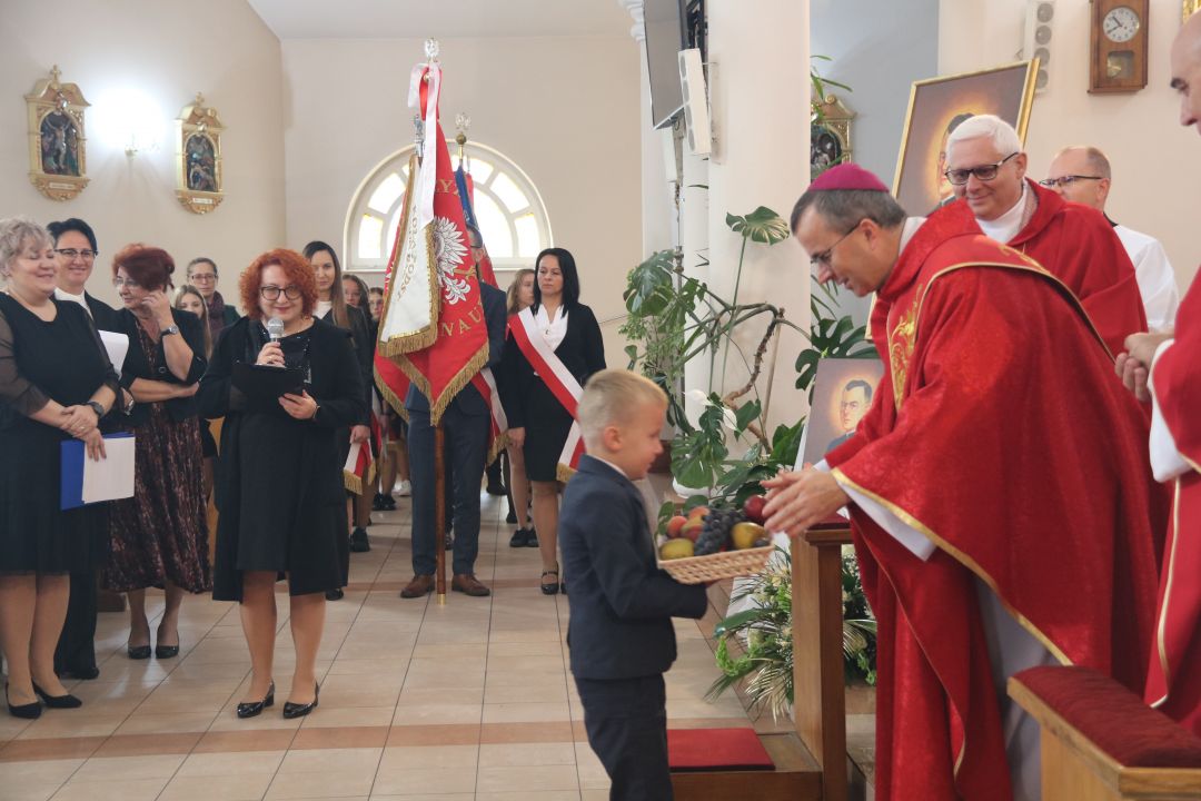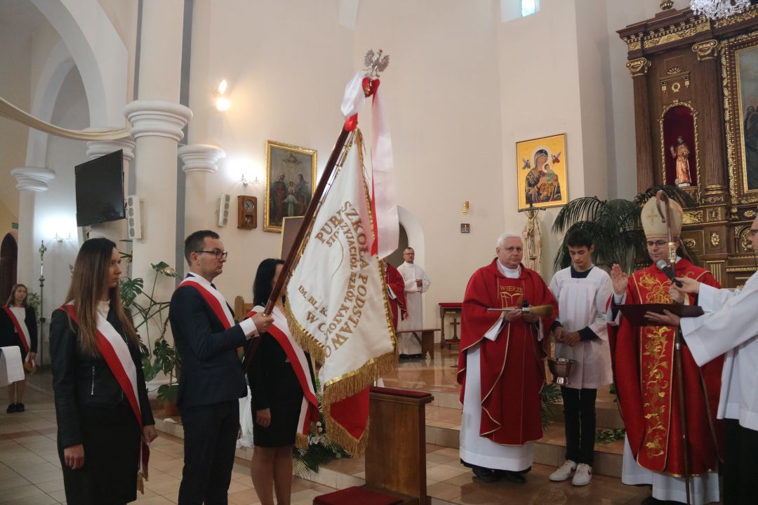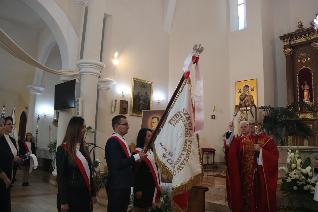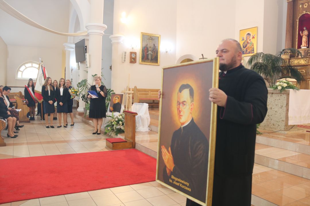 „Stajemy przed ołtarzem i pokornie prosimy: Boże, pobłogosław, bo piękne owoce, które chcemy , żeby ta szkoła przynosiła, wymagają Twojego błogosławieństwa „ – mówił biskup kaliski Damian Bryl 27 września 2022 roku na uroczystości nadania imienia bł. Ks. Józefa Kurzawy Publicznej Szkole Podstawowej Stowarzyszenia Przyjaciół Szkół Katolickich w Czempiszu. Wraz z biskupem kaliskim modlili się opiekun duchowy SPSK Ks. Prałat Marek Kundzicz, dziekan dekanatu błaszkowskiego ks. kan. Jerzy Mikołajewski, proboszcz parafii pw.Opieki Matki Bożej w Osięcinach ks. dr Piotr Dziurdziński, , ks.kan Robert Wardęcki proboszcz parafii pw. św. Krzyża w Brzezinach. Biskup dokonał poświęcenia sztandaru szkoły oraz obrazu z wizerunkiem bł. Ks. Józefa Kurzawy.