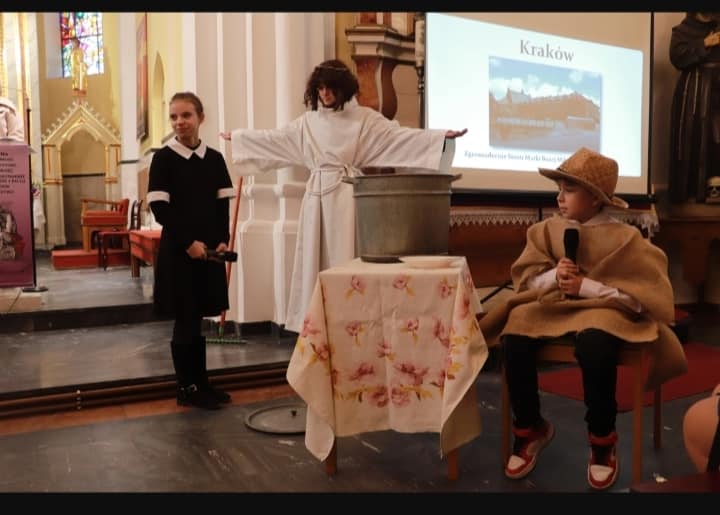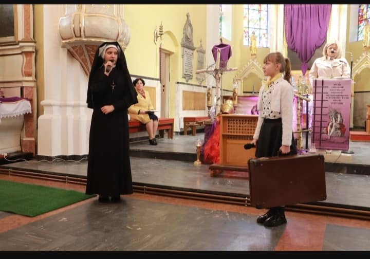 Zwieńczeniem uroczystości w kościele był spektakl, który zaprezentowali uczniowie. Przybliżyli w nim drogę do świętości siostry Faustyny. Uroczystość przebiegała w podniosłej atmosferze ku czci Świętej patronki szkoły. Nie zabrakło pochwał, gratulacji i wpisów do kroniki szkoły.