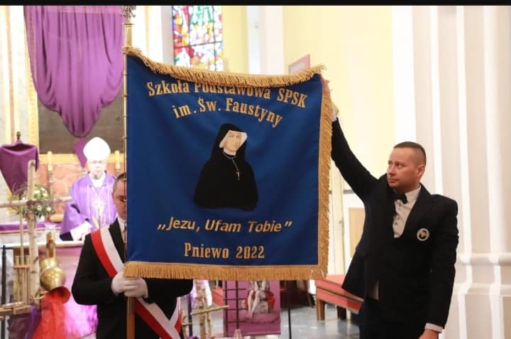 W dniu 29 marca 2023r. w Katolickiej Szkole Podstawowej SPSK im. Św. Faustyny w Pniewie odbyła się uroczystość nadania i poświęcenia sztandaru.