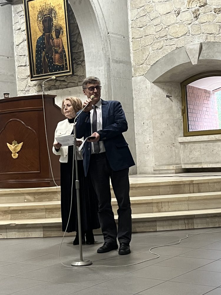 Dzieci opuszczają kościół..-rozpoczął smutno prelegent- Nie chcą kościoła odrzucają rodziców. Śmierć choroba dziecka nie jest tak straszna jak odejście od kościoła – śmierć duchowa. Pan profesor przywołał liczne przykłady świętych rodzin, które prosiły Boga o świętość. Rita- modliła o smierć synów… aby nie mścili się na mordercy ojca. Ulmowie- św rodzina – która poniósł najwyższą ofiarę za pomoc ludziom w potrzebie… Rodzina Martin – rodzice sw. Teresy- przyjęli od Boga dar powołania 5 córek. Rodzina bł. Carlo Acutis – wzór przeżywania Eucharystii-trzeba nieść łaski potrzebującym. Modlitwa rodziców za dzieci jest polisą na przyszłość – najlepszym ubezpieczeniem!
