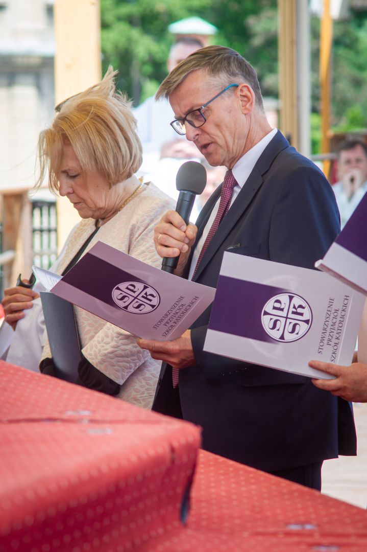 2 czerwca 2023 roku uczniowie i nauczyciele naszych szkół spotkali się na Jasnej Górze na XXV Pielgrzymce do Umiłowanej Matki. O 10.30 wszyscy zgromadzili pod szczytem Jasnogórskim, na szczycie powiewały szkolne sztandary, a spory zastęp ministrantów formował się obok ołtarza. Po powitaniu pielgrzymów rozpoczęła się uroczysta Eucharystia pod przewodnictwem JE bp Antoniego Długosza zakończona zawierzeniem szkół i przedszkoli Stowarzyszenia Przyjaciół Szkół Katolickich Jasnogórskiej Pani. Po krótkiej przerwie uczniowie i nauczyciele bawili się na koncercie Magdy Anioł. Pielgrzymka zakończyła się rozdaniem nagród za uczestnictwo w Gali Teatrów i Nagród Prezesa. Po raz XXV zawierzyliśmy się Matce. Bogu niech będą dzięki!