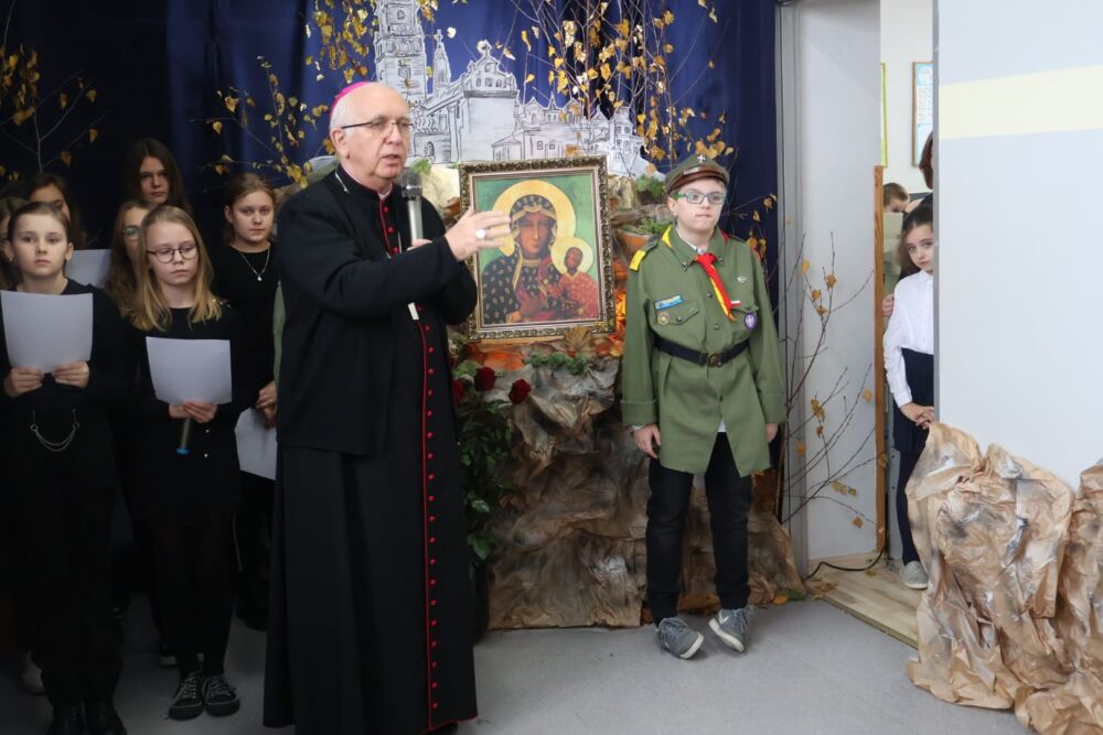 Arcybiskup Depo odwiedził szkołę, aby przygotować uczniów i przedszkolaków do wydarzenia w ramach zbliżającego się Nawiedzenia Obrazu Matki Bożej Jasnogórskiej w naszych parafiach. Ponadto przedstawił również historię TEGO WYJĄTKOWEGO obrazu oraz przypomniał o pierwszej perygrynacji, którą mogli pamiętać nieliczni.
